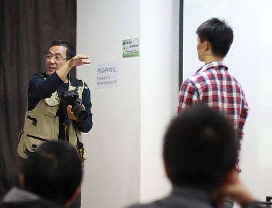 当天下午1点50许,各个协会的成员陆续到场,有序的在206门口签到。对摄影有兴趣的同学格外的珍惜这难得的机会可以去学习如何捕捉有价值的照片以及如何去处理照片等技巧。该培训分为5大板块,分别是如何的使用自己的相机,什么样的照片拥有新闻价值以及如何摆post等问题。并设有与同学们活动的环节,邀请一位同学做模特为他不同角度的拍照,教会同学们如何的在不同角度使用不同的方式拍到绝佳的照片。胡伟鸣老师用他资深的摄影经验,优秀的摄影成果和幽默的话语赢得了同学们的满堂喝彩。现场气氛活跃,甚至有位信管专业的同学将自己在旅游时拍摄的晚霞与灯光的照片拿出来和胡伟鸣老师交流,老师在肯定拍摄的优秀的同时也提出了宝贵的意见。