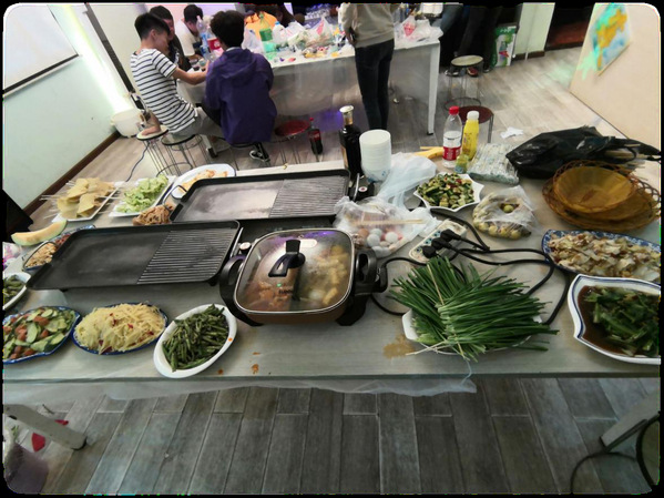 会长为了让大家能更快的融入乒羽协会这个大家庭,特地选择了轰趴馆。时间还未到,会长和一些理事会成员就已经开始准备食材了,就是为了更好的迎接社团小伙伴们。