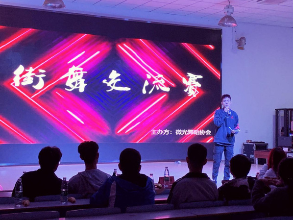 在街舞交流赛的尾声,副会长对每个来参加比赛的选手表示感谢,同时对台下的评委,观众以及在场的所有工作人员表示感谢。并发出复赛的邀请,时间定于2019年11月18日,希望大家能积极参与。