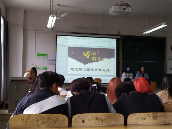 例会开始,社长胡世娇对上学期国学社举办的大小活动作出总结,并对理事会成员介绍了国学社的历史和发展。在放映幻灯片时,出现了一次小意外,使放映流畅度降低,但很快得到了有效解决。同时也表达了对未来的展望,对理事会成员表达了自己自己对此次会议的意愿,也希望大家在未来的工作的相互配合,社长胡世娇对本次会议的介绍做了总结。