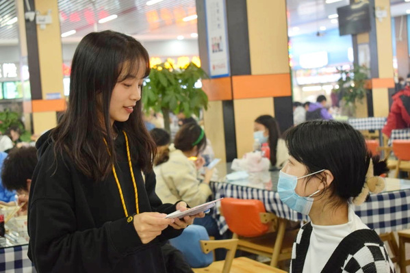 (记者对就餐同学进行采访)