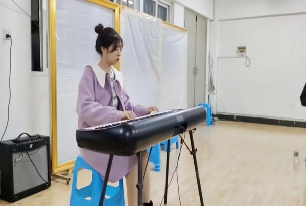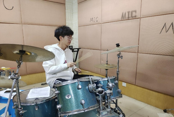 (图为器乐部部委架子鼓的考核)