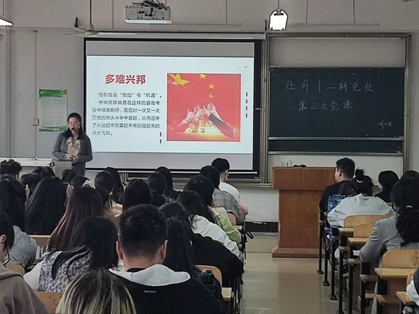 经济与商务外语学院青年马克思主义研究协会讯(记者:向佐英,摄影:曾子晏)2021年11月4日上午12:30经济与商务外语学院在综合楼208教室举行了第十二期党校的第三次党课。本次培训由公共课部思政教师余梦老师主讲,学习“年轻人应从战疫大考中读懂什么”为题的党校课程。