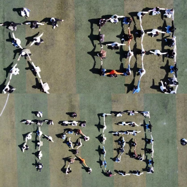 活动当天,同学们在操场依次排列字形,摆出了“文明”“校园”四个大字,表达了我们对于创建文明校园的决心。