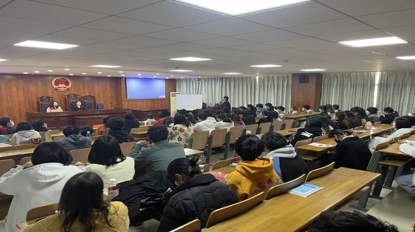 弘博法学会(记者:杜云飞 摄影:黄一凡)知识产权被侵犯,企业勿忘要维权!知识产权源于创新,和谐社会源于尊重。为了让同学们了解和学习知识产权的知识以及知识产权对于我们日常生活的必须,弘博法学会于2021年11月25日星期四下午2:00在综合楼707进行了一场来自湖北省高级人民法院三级法官叶宇的知识产权讲座活动。该活动最终以圆满结束落幕。