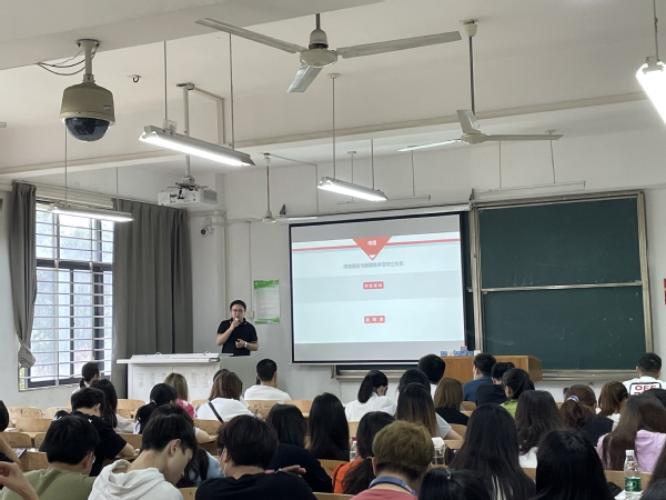 文法新视野(记者:肖小月 摄影:雷颖茵)6月3日14:00在综合楼208教室举办了由字节跳动湖北公共事务总监肖杰老师为我们开展的“新时代的新媒体发展”主题讲座。