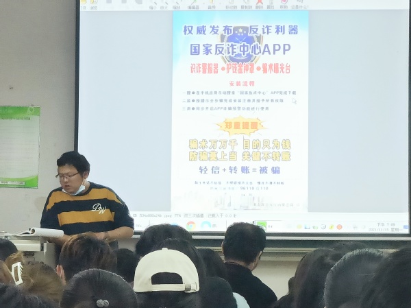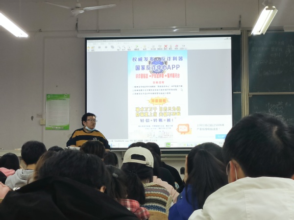 在班会上,老师们深度讲解了对于如何防范电信诈骗的相关要求,同时, 根据自己的教育经历,和同尝们交流了一些“ 悲惨的实例”,同时为同学们讲解了12种常见的电信诈骗手段,要求同学们做到:不轻信、不透露、不转账、要及时报案这四点。
