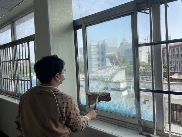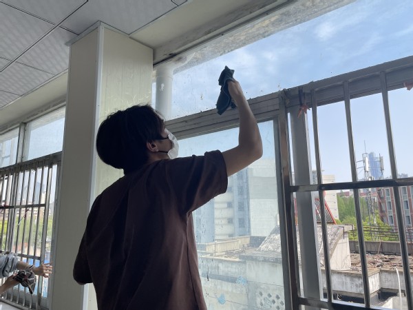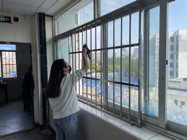 图3、4、5 文法学院法学党支部的志愿者们帮助打扫卫生