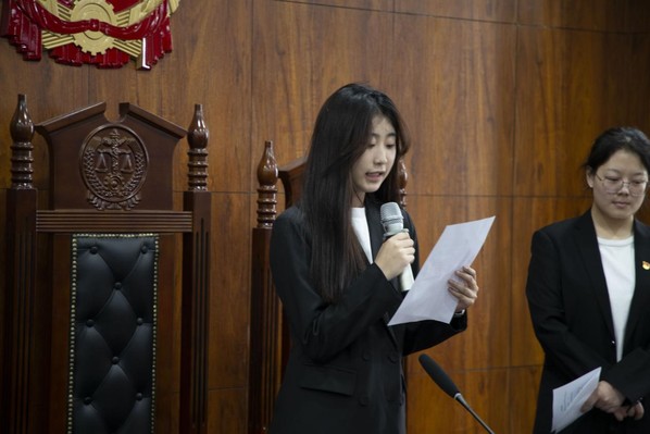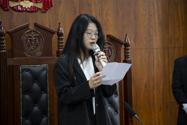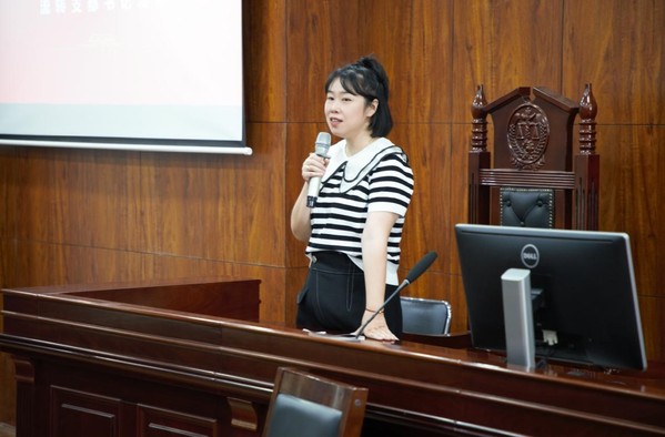 来自法学党支部的新发展预备党员代表刘雅琪同志发言,她总结了自己的优点与不足,希望未来可以保持优点同时改善自身缺点,和大家共同进步,为社会主义建设贡献自己的一切。