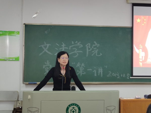 (记者 摄影:杨培)2023年11月8日12:30,文法学院党总支书记陈敏在外语楼620教室为第十二期党校的学员上了一堂有关“三个务必”的生成逻辑、深刻内涵和实践方略的党课。