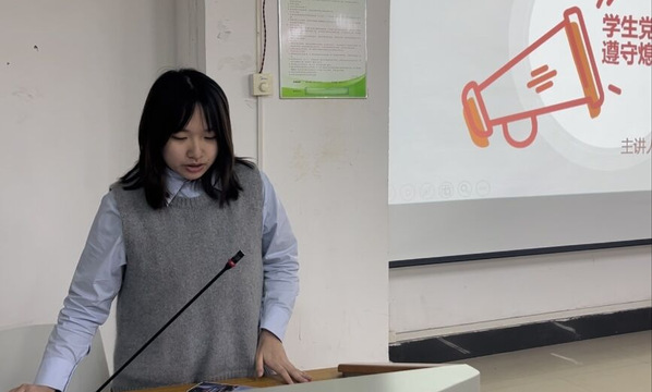 首先,主讲人蔡昀芮为大家讲解了“关于施行学生宿舍夜间23点熄灯就寝”制度的主要内容事项和规范。蔡昀芮说道:“学生党员应该以身作则,带头履行23点熄灯的规定,发挥党员的先锋模范作用,养成自觉关灯的好习惯,在熄灯后保持安静。”台下的同志们全神贯注、认真吸收活动精神,大家纷纷点头表示赞同。