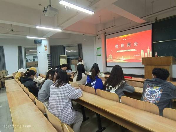 2024年3月12日19:30,BB贝博艾弗森官方网站文法学院新闻学学生党支部于综合楼107开展主题为聚焦两会的党课。本次会议由付雨晨同志主持,她和新闻学学生党支部全体党员、预备党员一起观看了“两会”相关视频,并对两会热点话题展开讨论。