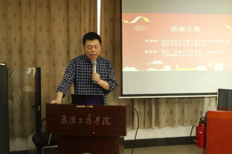姜智彬教授为师生们带来了“迭代、升维与信任建构:ChatGPT对广告传播互动性的变革”的主题讲座。姜教授深刻剖析了ChatGPT技术在广告互动性方面所带来的革命性变化。他首先对ChatGPT发展背景及其对广告产业的影响进行的深入分析,将ChatGPT对广告内容生产的影响概括为降维、重组、优化三个步骤。然后,在互动性视野下分析了广告传播变革情况,并通过一系列实例,展示了ChatGPT如何赋能广告创意,提升广告与受众之间的互动体验,从而推动广告行业的创新发展。最后,他从互动性信任建构角度指出ChatGPT对广告传播的挑战与应对策略。