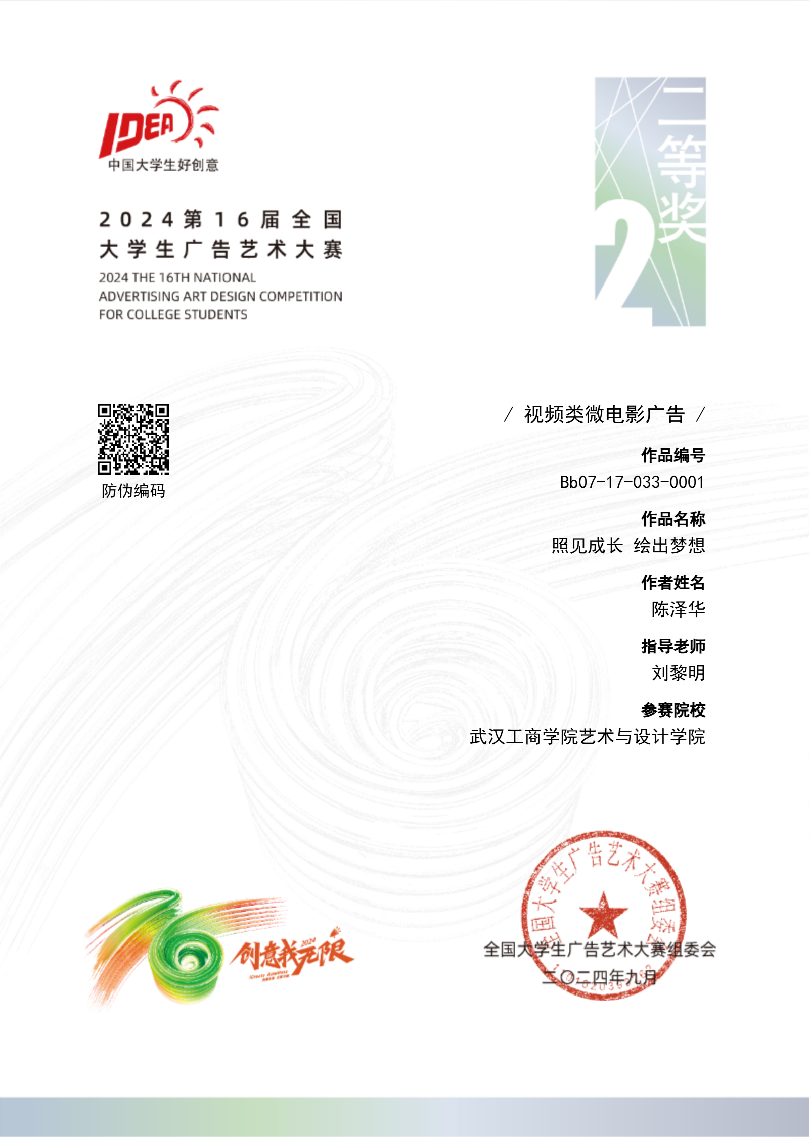 《照见成长 绘出梦想》陈泽华刘黎明艺术与设计学院二等奖