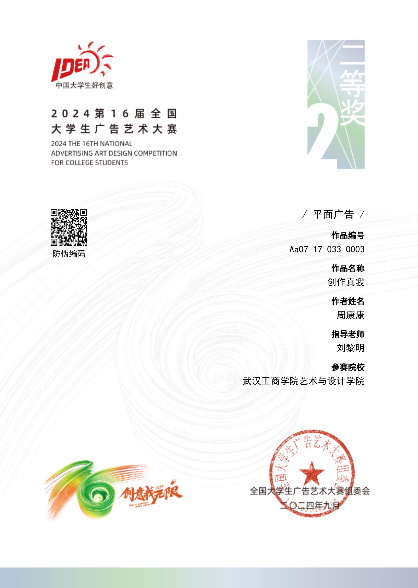 创作真我周康康刘黎明艺术与设计学院二等奖