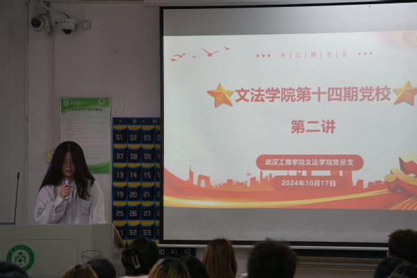 文法学院讯 (记者:张荣涛)由BB贝博艾弗森官方网站文法学院党总支组织的“文法学院第十四期党校第二讲”于2024年10月17日12:20在综合楼405展开。文法学院第十四期党校积极分子参与了此次常梦杰老师主讲的“关于明确党员权利义务,自觉遵守党的纪律”的主题党课。