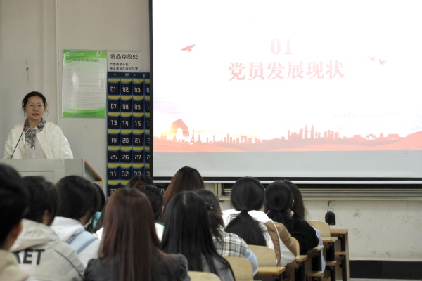 课堂开始,文法学院的张盼盼老师提出本次党课讨论主题是“发展入党流程”主题党课。张盼盼老师指出目前有很多同学并不清楚入党流程,本次党课的主要目的就是让同学们加深对入党流程的认识,明确发展党员工作的规范性和重要性。张盼盼老师阐述了自己将分别从“发展现状”、“发展流程”、“发展要求”、“党员教育”、“党员考察”五个方面带领同学们共同认识入党流程。