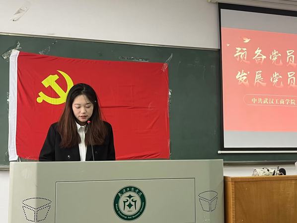 大会进入大会第六项议程,由刘静雯同学代表的新发展党员讲话。刘静雯同志说到:“我深知,中国共产党自成立以来,经历了无数的风雨和考验,但党始终坚持以人民为中心的发展思想,不断推动中国特色社会主义事业向前发展。我渴望成为党的一员,为实现党的宏伟目标贡献自己的力量。”刘静雯为同志们指明今后需要努力的方向,在之后的讲话中,刘静雯同志还说到我们应行的具体措施,为我们提供一个参考。