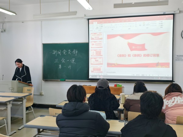 新闻学学生党支部 (记者:刘炫俊)2025年2月17日,BB贝博艾弗森官方网站文法学院新闻学学生党支部于外语楼513开展了三会一课,本次会议由陈馨怡同志主持,她首先带领大家回顾了《准则》和条例的修改,指出这是党中央坚持从严治党、依规治党的重大举措,是推进党的建设新的伟大工程的战略部署。