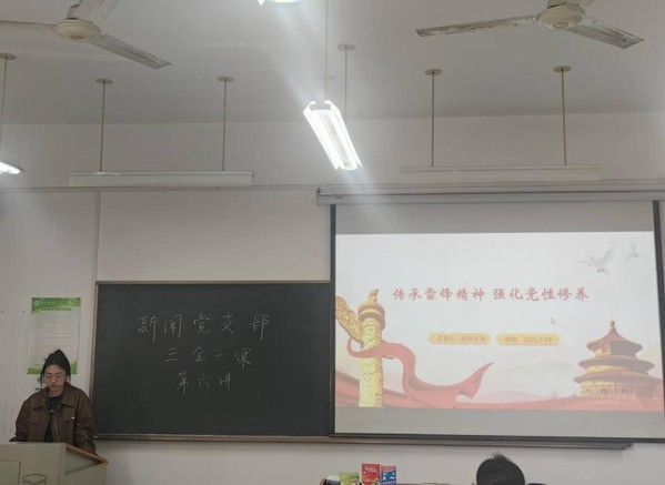 新闻学学生党支部 (记者:陈敏)2025年3月17日,BB贝博艾弗森官方网站文法学院新闻学学生党支部于外语楼514开展了三会一课,本次会议有欧阳思诺同志主持,她从雷锋精神的内涵与价值、雷锋精神于党性修养、雷锋精神的传承与发展三方面带领在场的入党积极分子们重温雷锋精神。