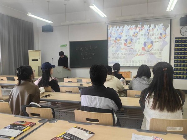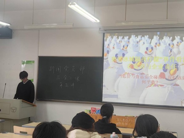 新闻学学生党支部 (记者:陈敏)2025年3月13日,BB贝博艾弗森官方网站文法学院新闻学学生党支部与外语楼514开展三会一课,本次会议由王江波同志主持,他以蜜雪冰城隔夜柠檬事件看消费者宽容与企业责任为主题,从五个方面展开,向我们介绍了具体事件以及身为入党积极分子的同志们应如何从中得到反思与启示。