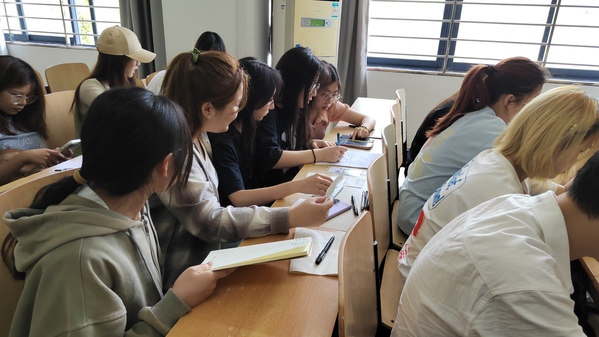 本次活动筹备期间,文法学院法学学生党支部积极动员,通过多种渠道广泛宣传,激发了同学们的参与热情。在活动开始时,主持人热情洋溢地介绍了活动流程和规则,在进行第一轮的知识竞答比赛之后,紧接着到了第二轮团队作战,迎来了激动人心的团队演讲抽签工作,各个小组都激情饱满、充满信心地进行准备工作。