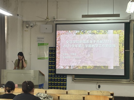 文法学院讯 为切实做好实践教学环节工作,提升学生专业实践能力。文法学院新闻系2024-2025学年第三学期实习动员大会于近日顺利进行。会议由新闻专业郑雨雯老师主持召开。