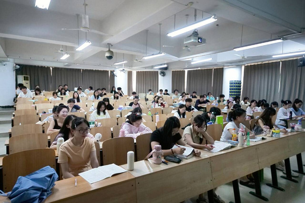 自法考制度实施以来,文法学院法学系始终以学生的成长与发展为核心,十余年如一日地默默守护、持续助力。每一个暑假,学院都如期开设“法考备战班”,组织骨干教师团队,为每一届学生系统辅导、全程护航,高温未能阻挡前进的脚步,假期不曾松懈的坚持,教室依旧灯火通明,黑板上写满智慧,课桌间流淌专注。