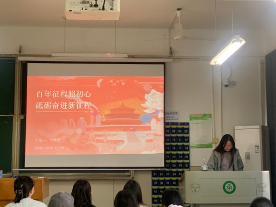 广告网媒联合党支部(记者:刘梦雅 肖菀澄)2025年11月20日12:10,文法学院广告网媒联合学生党支部在综合楼209召开了主题为“百年征程照初心砥砺奋进新征程”的三会一课,本次会议由刘梦雅同志主持。