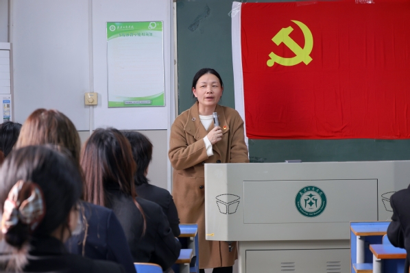 大会第二项议程,由党支部流转支部书记夏淑芳老师发言。夏老师发言时首先祝贺在座各位得以发展的同学成为我们党的新鲜血液,同时强调道:“希望各位同学加入这个组织之后,能够严格按照党员的标准来要求自己,继续发扬我党的优良作风,在未来的学习、工作以及生活当中都能起到带头作用。”