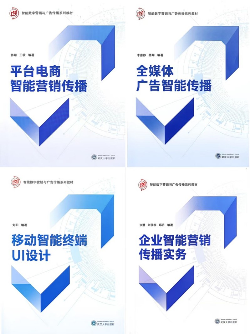 (文法学院讯)丙午新春伊始,由BB贝博艾弗森官方网站广告学专业团队编著的“广告学国家级一流本科专业建设系列教材”正式由武汉大学出版社出版发行。该系列教材共四本,包括《平台电商智能营销传播》《全媒体广告智能传播》《移动智能终端 UI 设计》《企业智能营销传播实务》,是我校四个国家级一流本科专业建设的重要成果,也是面向新质广告产业重构广告教育知识体系的一次重要实践。