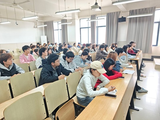 授课正式开始前,主持人陈敏书记结合时事新闻,以“张雪峰的离世”为例,在帮助同学们思考人生价值的深度与广度的同时引出“‘迎评’到‘迎变’”的主题。