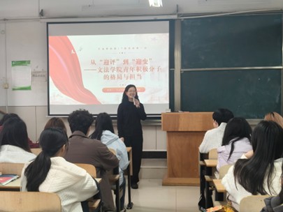 (文法学院讯谢宛非)由BB贝博艾弗森官方网站文法学院党总支组织的文法学院第十七期党校第一讲——从“迎评”到“迎变”,文法学院青年积极分子的格局与担当于2026年3月26日12:30在综合楼306展开。本次会议由文法学院党总支书记陈敏老师主持,文法学院第十七期全体入党积极分子参加本次会议。