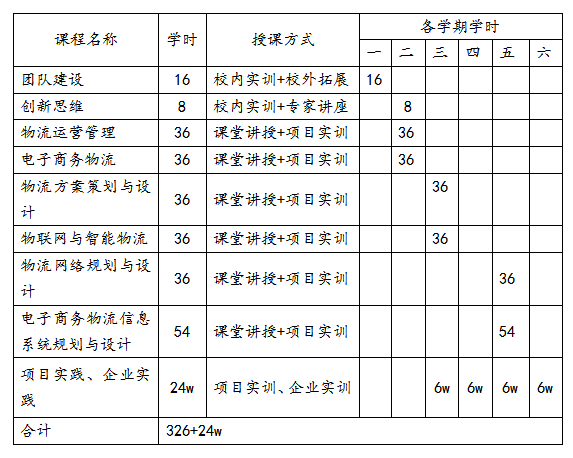 实验班学生单独开班,学习的课程以2015版物流管理专业人才培养方案为基础,除了原有的课程外,实验班增加的特色课程如下表所示: