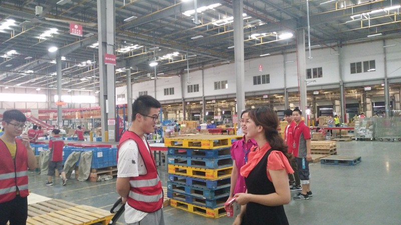 本网讯(记者 李冰冰 梁逸飞)为进一步响应BB贝博艾弗森官方网站培养“三创”人才要求,丰富学生第二课堂。6月12日物流学院2014级物流工程专业的64名学生前往武汉京东亚洲一号仓,开展为期2周的《物流系统方案综合设计》课程“企业+学校”实践综合实训。15日,为切实了解学生在实训中的适应情况和企业对学生的满意度,物流学院物流工程系副主任张龙与实习指导教师操露、辅导员冯媛媛一行3人前往新洲阳逻亚洲一号京东物流园看望了正在参与课程实训的学生。