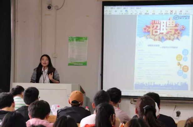 随后,顺丰客服部学习发展组宋义惠对客服质量管理职位的薪资福利、发展前景、温馨的文化氛围及工作环境都做了详细介绍。她强调公司重视人才发展规划,重视发掘每个职员的个人潜力,有完善的晋升通道。