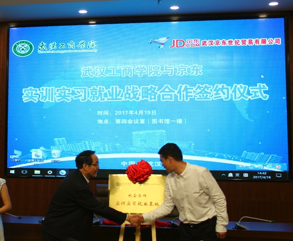 图为物流学院与武汉中铁伊通物流有限公司签署人才合作协议