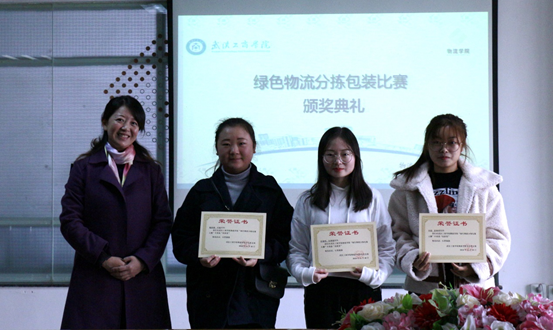 本网讯(记者 朱梦晓)表彰先进鼓干劲,激发热情促提升。11月23日中午12:15,物流学院学生党支部“分拣包装大赛”颁奖仪式在综合楼921会议室举办,物流学院党总支书记蔡菁、副院长周小芬、学生党支部书记冯媛媛出席了颁奖仪式,并为获奖学生颁奖。20多位学生代表参加了颁奖仪式,仪式由冯媛媛老师主持。