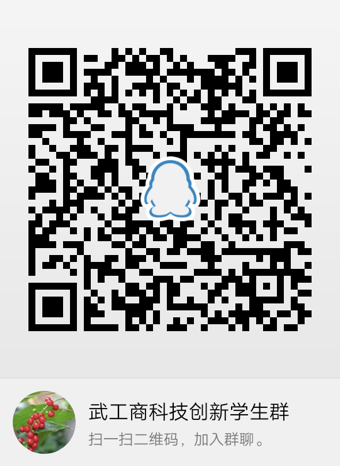 1、有兴趣的同学们可加入“武工商科技创新学生交流群”,群号:1015683350,加群后请主动修改群名片,格式统一为:学院(简称)+专业+姓名命名;