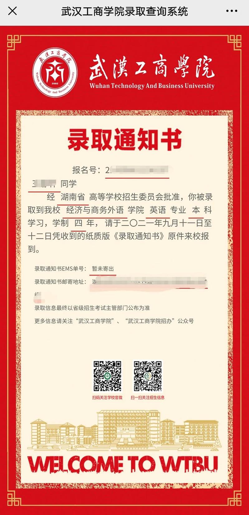 1.我校录取通知书均由中国邮政EMS从2021年8月1日起,自湖北省武汉市发出,请注意甄别