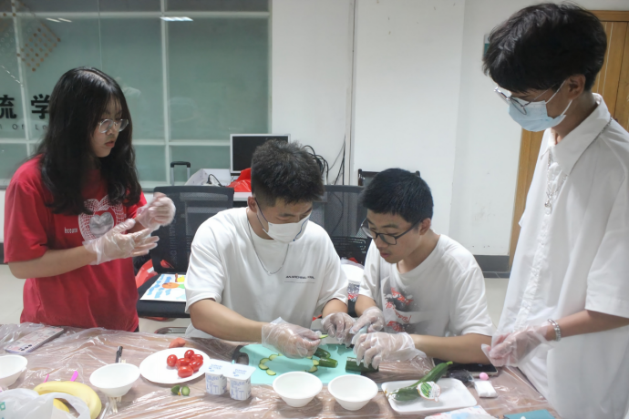 在第二部分的活动实践中,同学们充分利用了提供的蔬菜水果,大胆的对食材进行雕刻,尝试用不同的造型摆盘。平日里平平无奇的食材经过学生们充满想象力的创造后,风格迥异,散发各自的魅力。