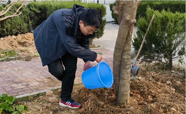3月12日下午,物流学院多位教师与学生积极参加学校工会组织的“绿意葱茏,植树成林,春色满院”植树节主题活动。教师们拿着铁锹,拎着水桶来到静思湖畔的“春华秋实林”栽植桂树。