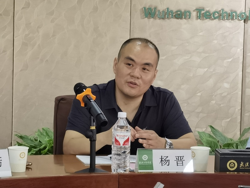 图为武汉交通职业学院物流学院院长杨晋做汇报 摄影:楠木