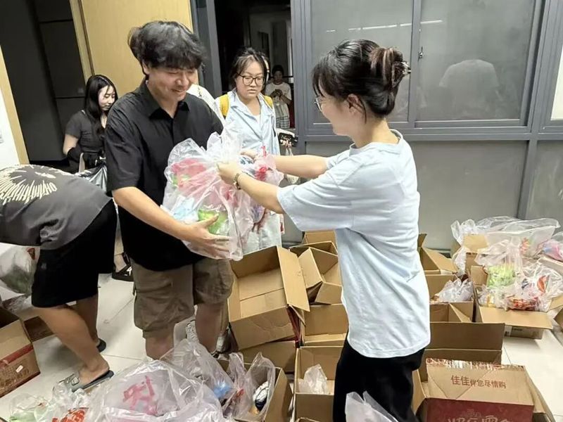 学院党总支书记蔡菁老师为同学们发放中秋礼物。同学们有序领取,现场氛围热烈。