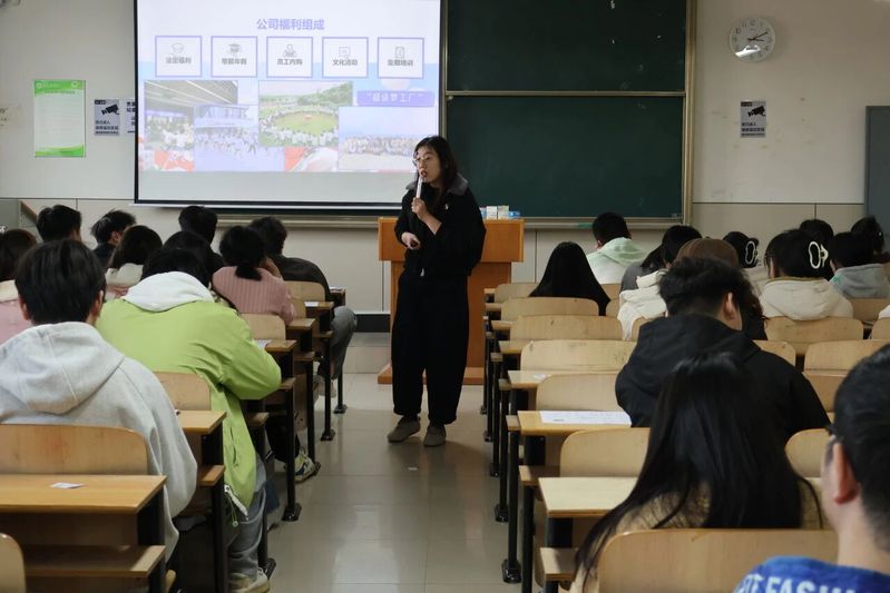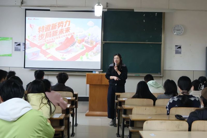 宣讲会伊始,湖北特步校招负责人韩紫璇首先介绍了企业的发展历程、社会责任、岗位需求以及实习期间的相关待遇。她说,特步作为民族品牌,非常重视将企业社会责任融入发展的各个环节,也很重视对员工关怀。这既是民族品牌的责任担当,也是企业实现可持续发展战略的重要组成部分。