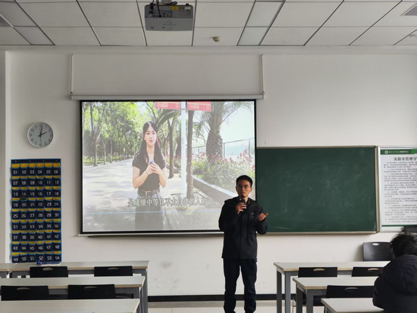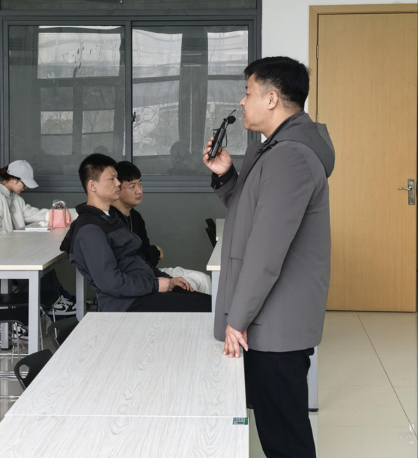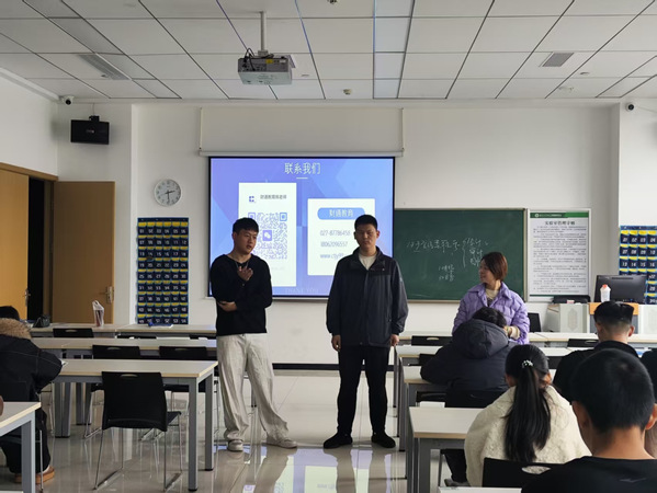 随后,武汉财通教育的吕道忠老师登台发言,简要阐述了当前大学生考研的整体态势及备考大环境,表达了对物流学院学子考研备考的支持与期望,同时说明本次分享会的初衷是为学子们搭建高效的考研交流平台,帮助大家理清备考思路、规避不必要的弯路。