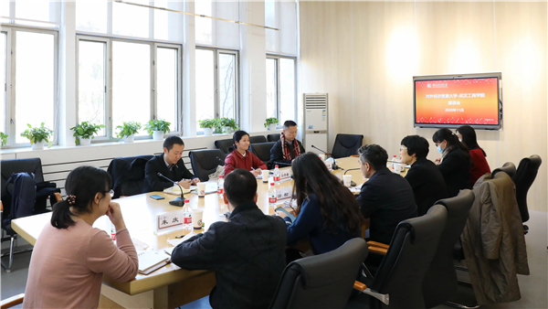 双方在对外经济贸易大学求真楼603会议室举行了座谈会,彭秀春董事长与对外经济贸易大学党委副书记文君围绕就业创业“一帮一”行动和招生、就业创业以及学生工作进行了亲切交谈,座谈会由对外经济贸易大学招生就业处处长徐松主持,招生就业处副处长苗冬青、朱庆、史春辉,学工部副部长鲁萍,综合办公室主任王慧敏参与交流。