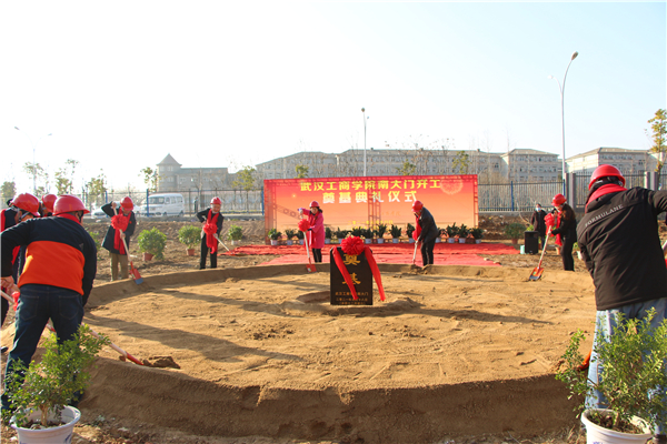 图为彭秀春董事长等领导为学校南大门建设培土奠基 摄影:孙欢欢
