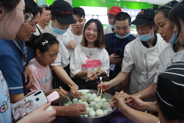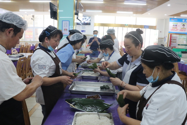 6月11日下午,学校后勤管理部、学生工作部联合武汉百味探花餐饮管理有限公司在学校一食堂二楼开展了“百味庆佳节,粽香传千古,共筑师生情”主题活动,吸引了不少学生参与。