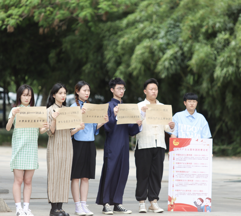 快闪现场学生宣传展示中国共青团更名史 摄影:李若源